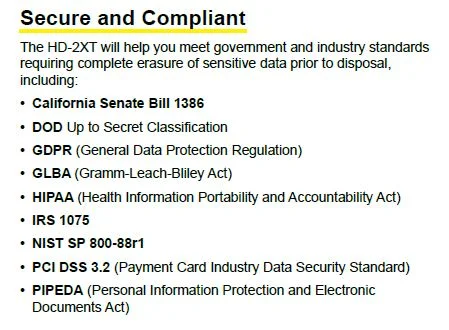 Every piece of equipment we use delivers you the most secure, compliant, and cost effective data erasure for the SMB market! DoD, HIPPA, NIST, NSA/CSS, PCI DSS, PIPEDA, GLBA, GDPR…you name it, we got you covered! No one will take your data security needs more seriously than we do, and that’s a guarantee.